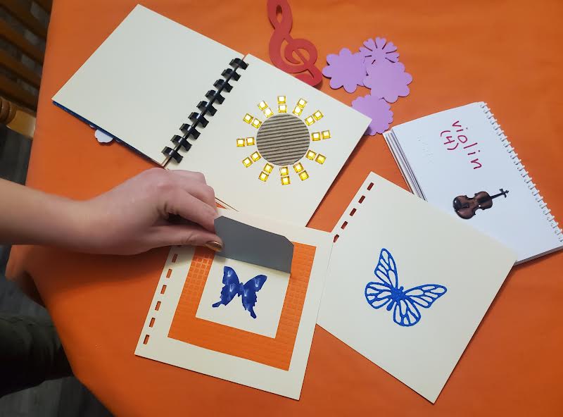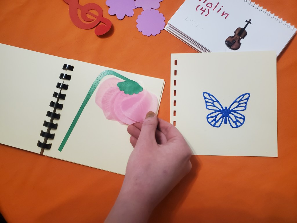 Dots Paper Scissors is part of Eden Transition Alliance. It’s a project that produces tactile pictures books for young children, especially targeting blind toddlers who have few options for learning about tactile images. The book makers include young adults with various disabilities. They are learning to use office machines (die cutter and embosser, paper cutter, coil and comb binders) to make these books. We have gotten grants from a parent group, the Lions Foundation of Michigan, Delta Dental, and Rainbow Resources to buy some of the supplies we need to create the tactile images.